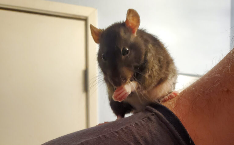 At our house we have three lovable little rat sisters, Poppy, Lilly and Dahlia. Along with their unique personalities they all have very unique looks as well. Poppy started out an all beige color with a white belly and Dumbo ears to rapidly changing in about 2 weeks to an all white Siamese with a brown nose and brown on the base of her tail. She is sweet a little timid at times and loves to lick like a dog!