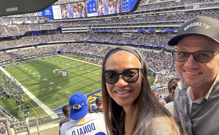 In our free time, we love watching live performances (theatre, concerts, dance), cooking new recipes together, hiking local trails, and hosting game nights with friends and family. You might not be surprised to learn that we are always the first to try the most adventurous dish on any menu. You may however, be surprised to hear that we have been in the same fantasy football league for years and Srey is typically more competitive than Jeramiah. We lived in Brooklyn, NY when we got engaged and for the first 2 years of our marriage but moved back to Los Angeles during the pandemic to be closer to friends and family.