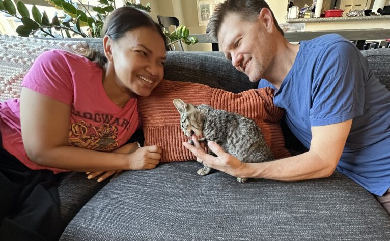 Zoe became part of our family in 2013, though it didn’t start that way. Jeramiah was cat-sitting for friends who kept going out of town for work. After months of back-and-forth, his friends realized their travel schedule was too hectic to keep caring for Zoe and decided to put her up for adoption. Heartbroken by the thought of losing her, Jeramiah didn’t hesitate to step up and make her officially part of his life. Though Srey is allergic to cats, Zoe quickly won her over, and now we can’t imagine life without her. Zoe has taught us patience, compassion, and unconditional love.