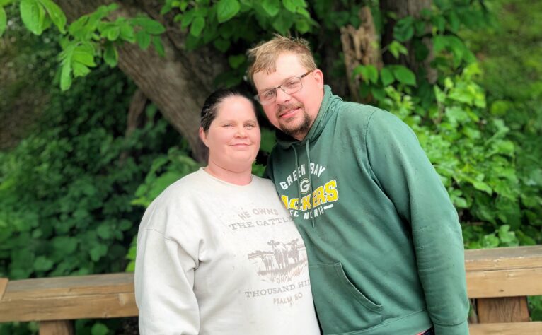 We love our ranch-style home on 13 acres here in Nebraska, where we raise 12 cows, more than 100 chickens, and our dog Dewy, who helps us work the cattle. Life on the farm keeps us busy in the best ways, but we make plenty of time for fun too. In the evenings, we relax in the living room talking about our day or cheering on football—her Denver Broncos, his Green Bay Packers, and Nebraska college games we watch together. We enjoy grilling and smoking meats, tending our garden, and trying new recipes with the food we grow. Tractor pulls at the county fair, supporting FFA events, and playing a round of golf with her dad are just a few of the ways we enjoy our small-town life and community. Spring is our favorite season, when new calves are born and we begin planting again, a season full of hope and fresh beginnings.